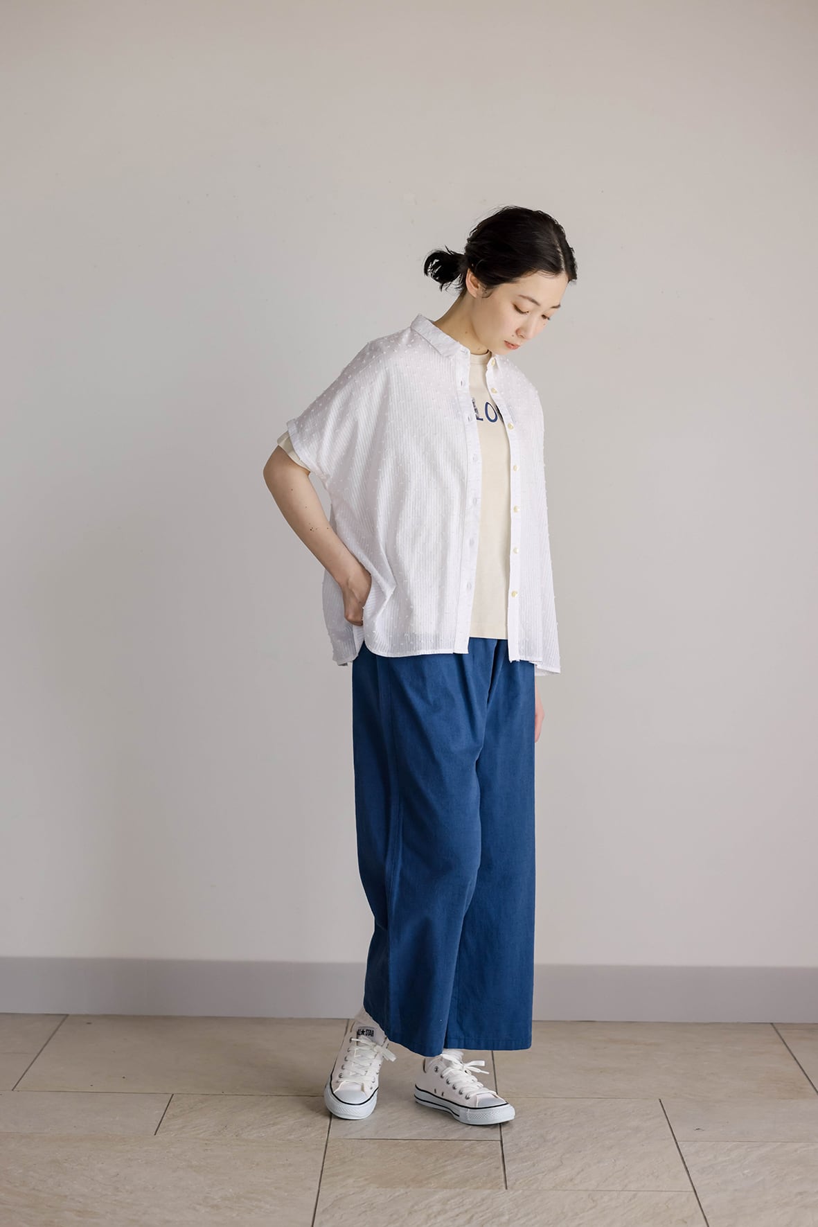 コットンの柔らかさとリネン特有のドライな風合いを併せ持つコットンリネン素材で