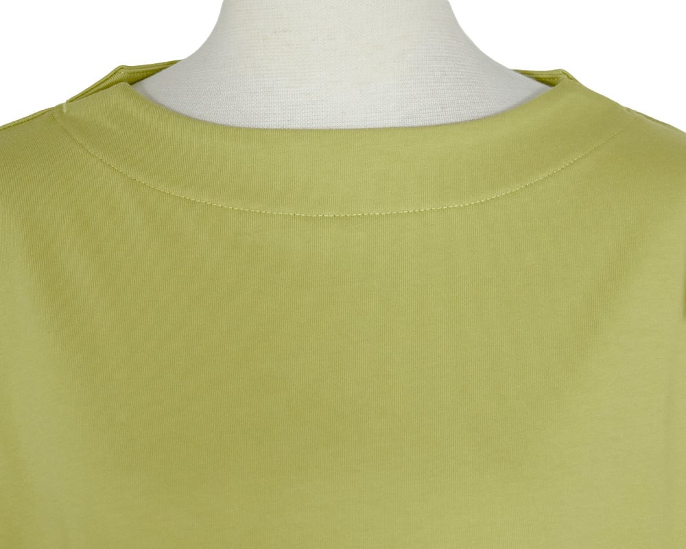 女性らしさのある少し立ち上がった襟は首元を上品にカバーしてくれるシンプルなデザインTシャツです。