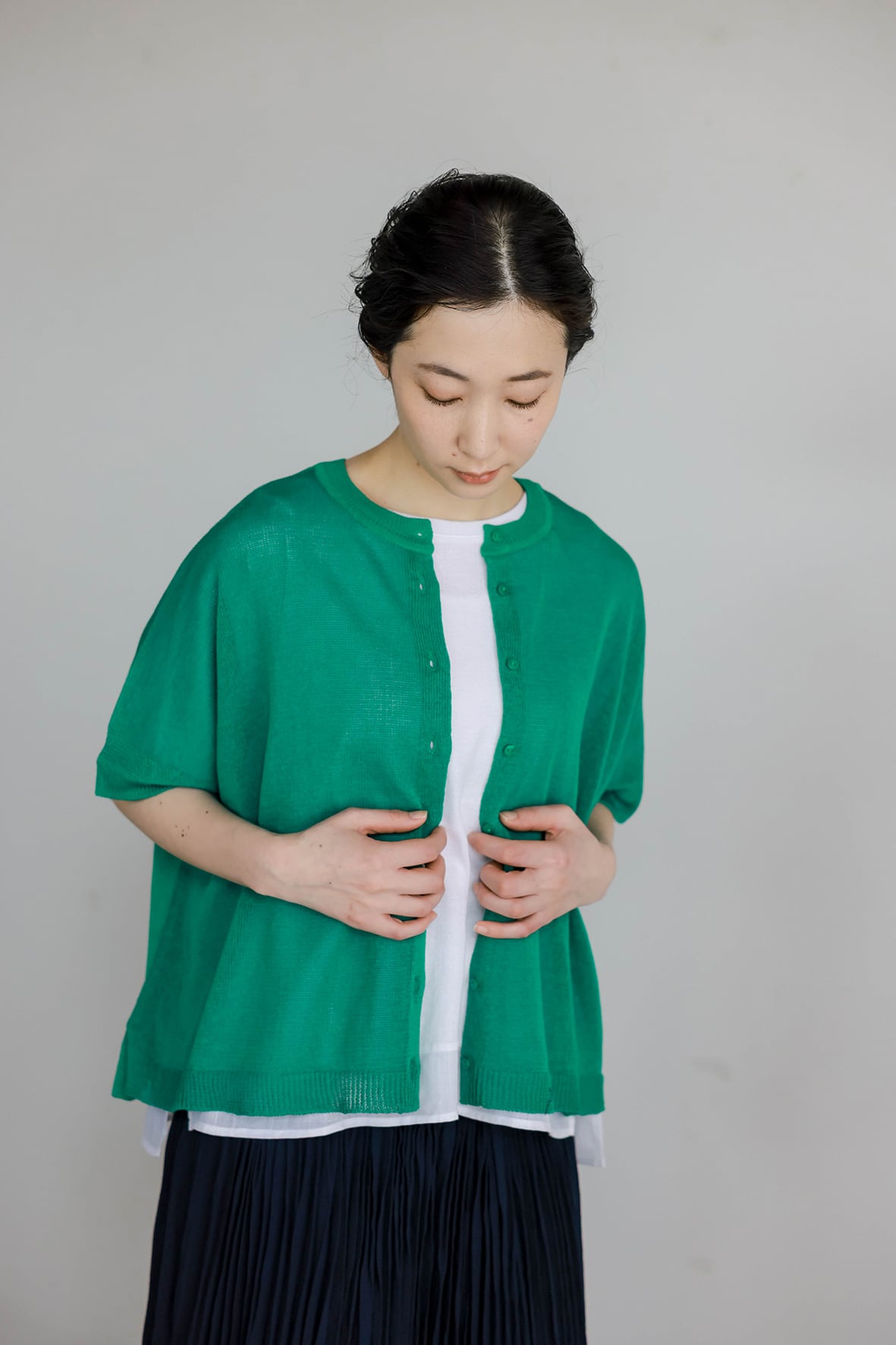 前後で異なる透け感と軽やかさが特徴のスクエアカーディガンです。