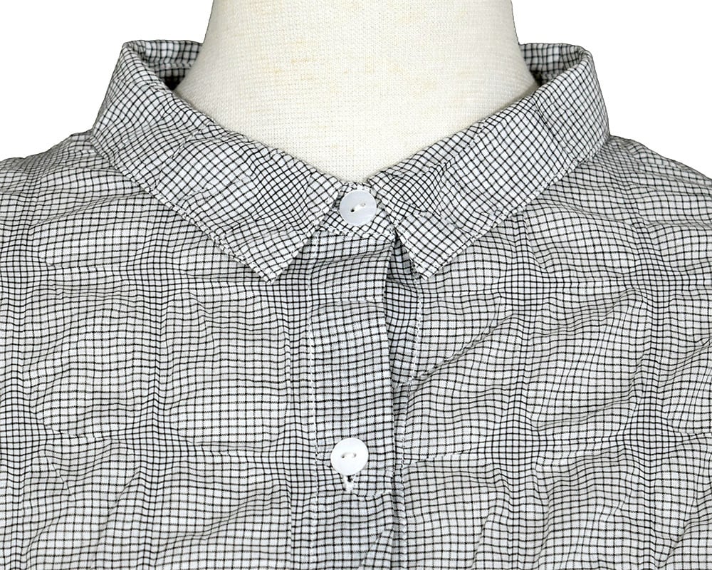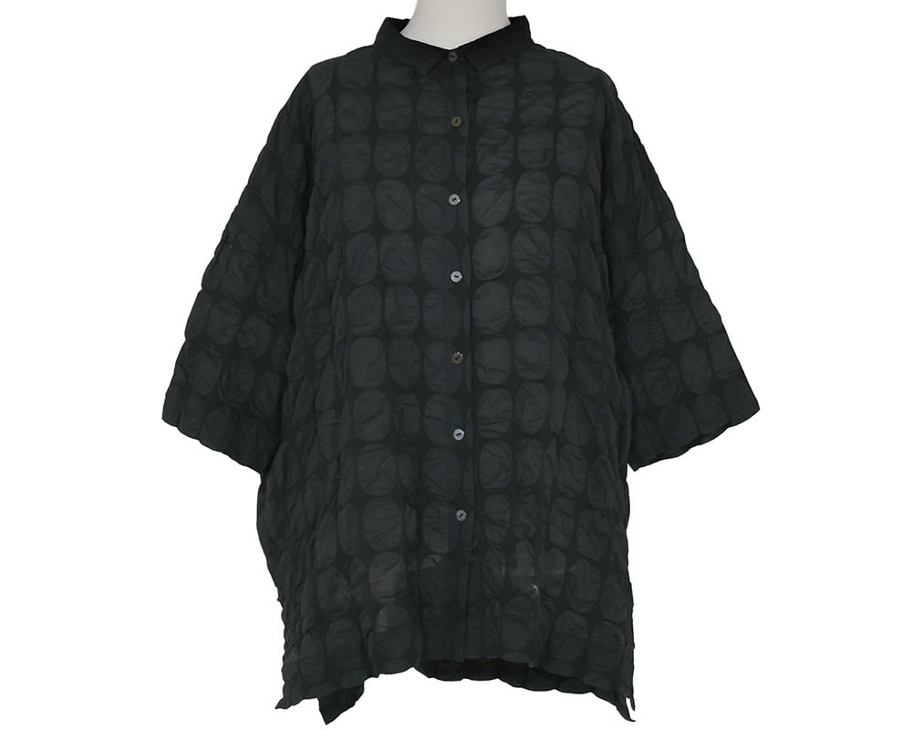 凹凸のあるシアードット素材が着映えする、シャツカラーブラウス