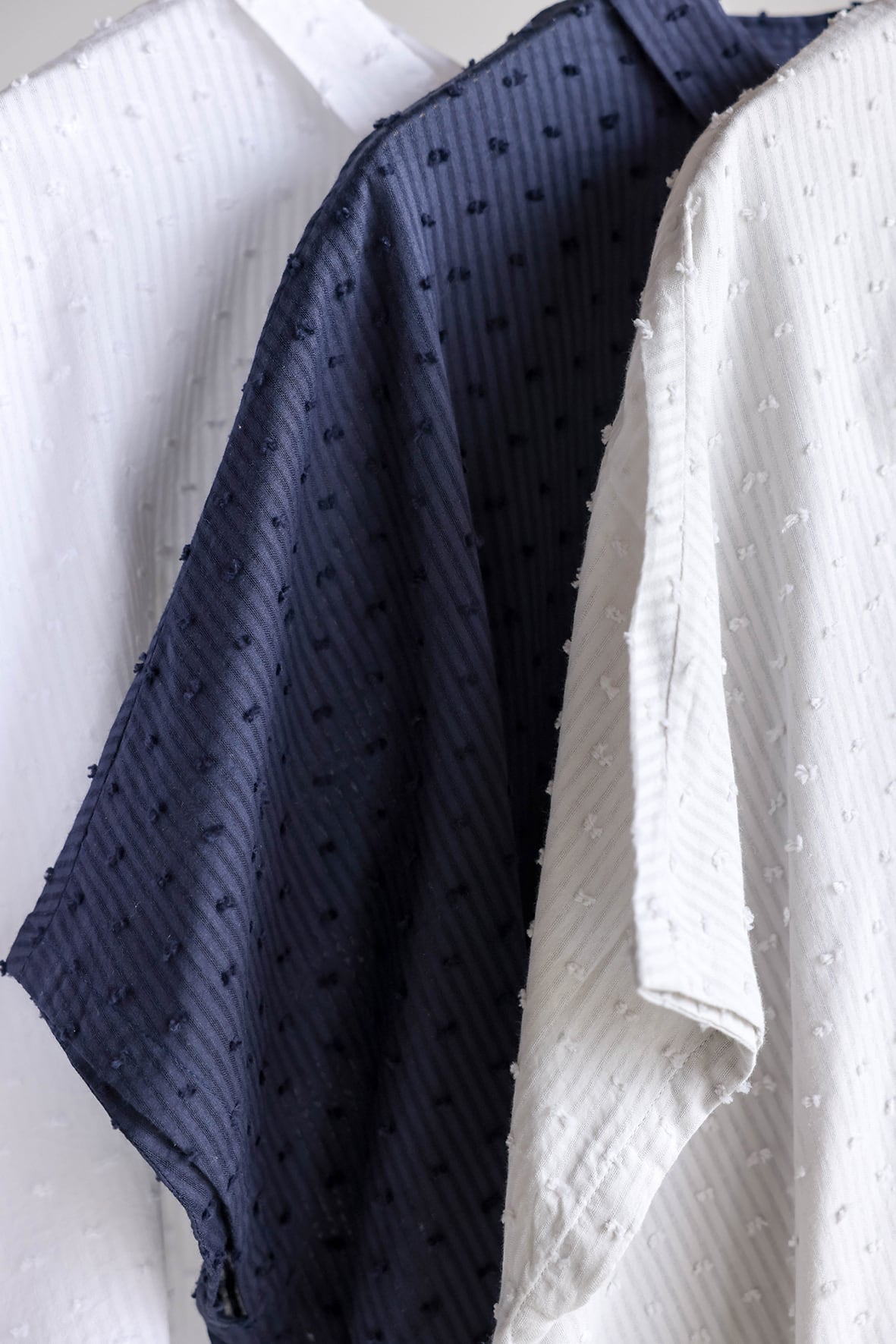立体的な凹凸感のあるカットドビーにストライプ柄を組み合わせた、表情豊かな生地を使用しています。