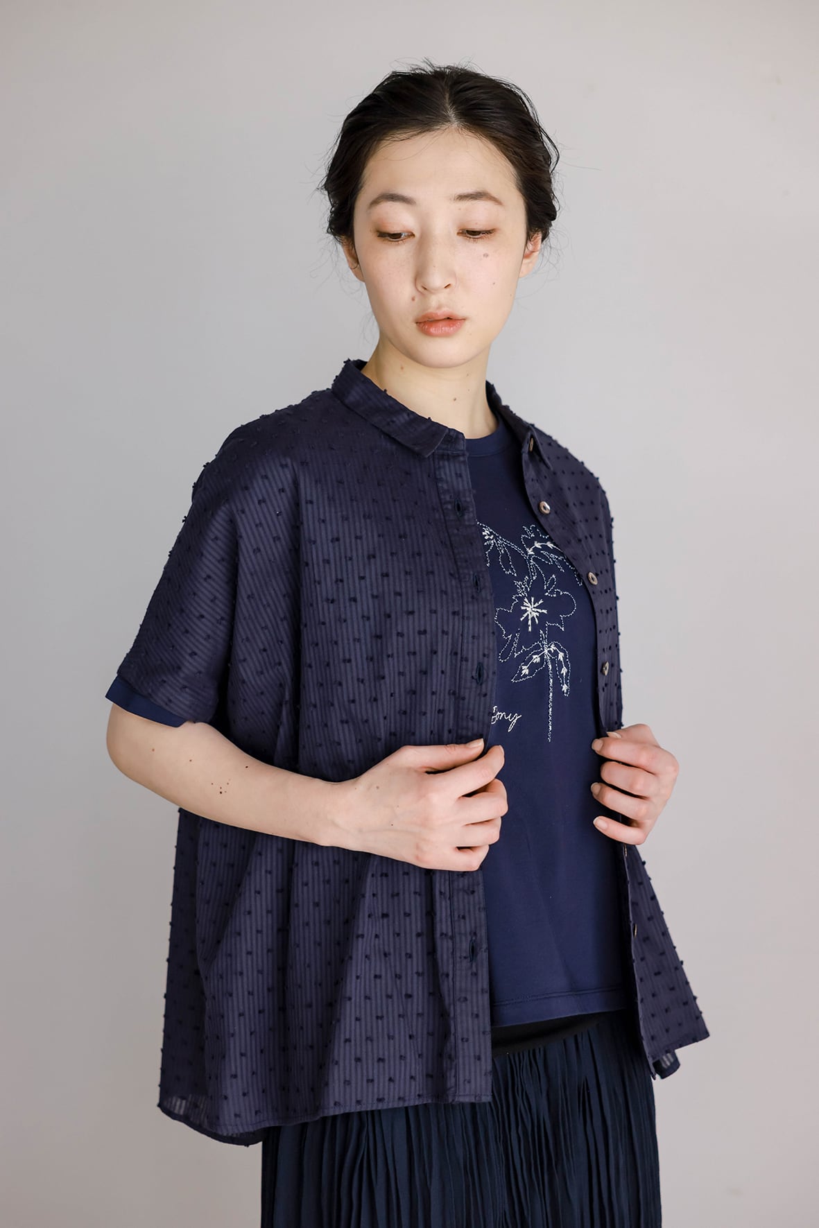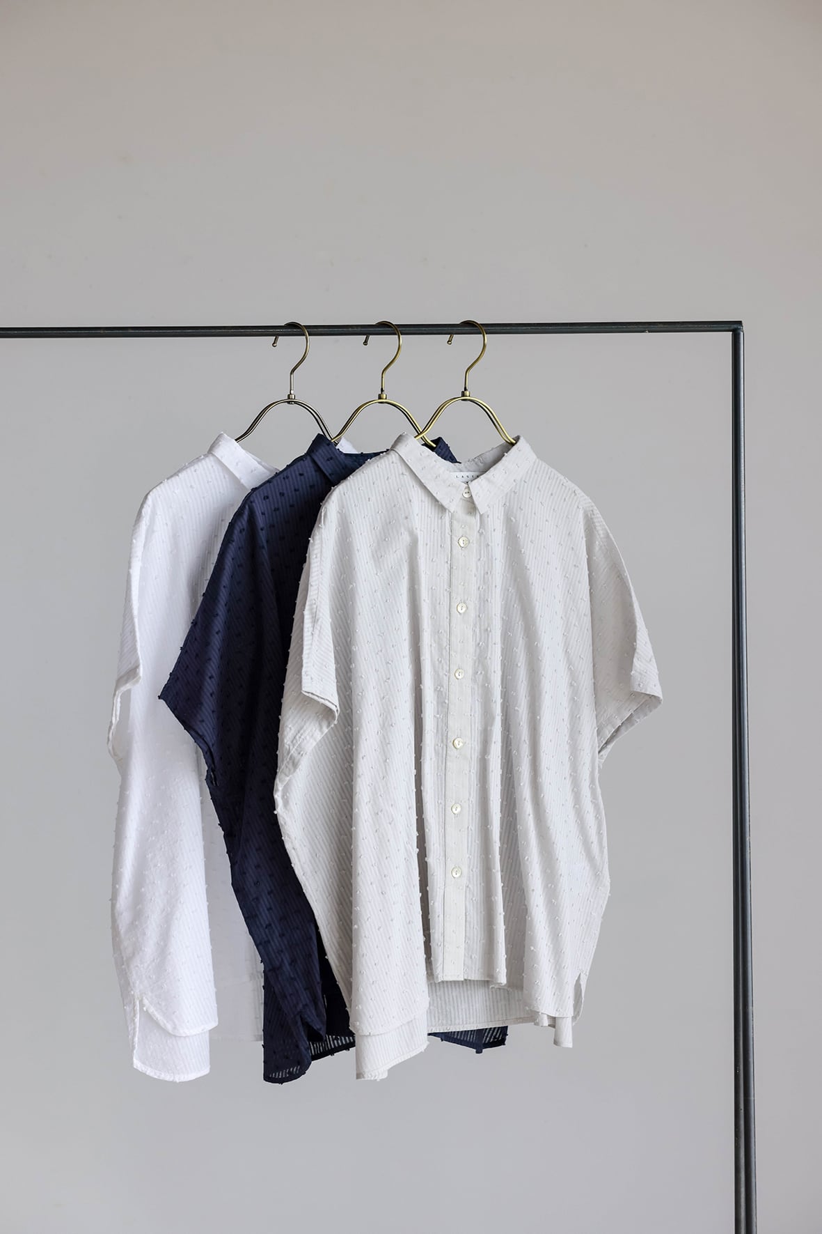 スクエア型のルーズなフォルムで、リラックスした着心地のシャツブラウスです。