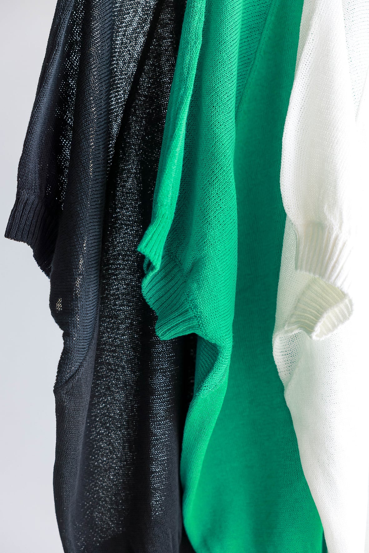 ドライでさらっとした質感が風通しよく、涼やかな着心地の素材です。