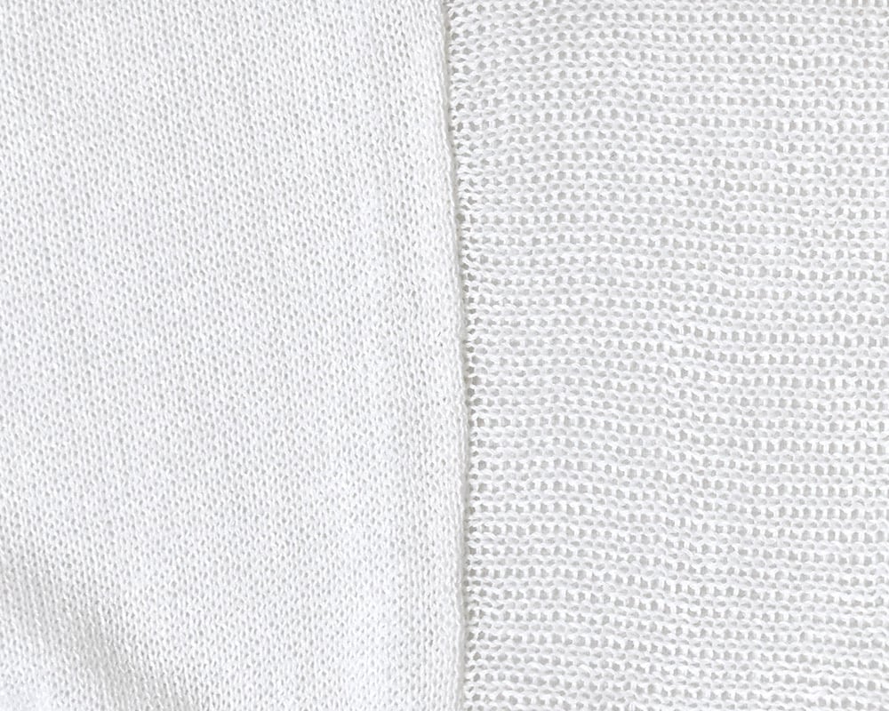 麻のような風合いのギマ糸と、レーヨンにポリエステルを混紡した2種類の糸を使用し