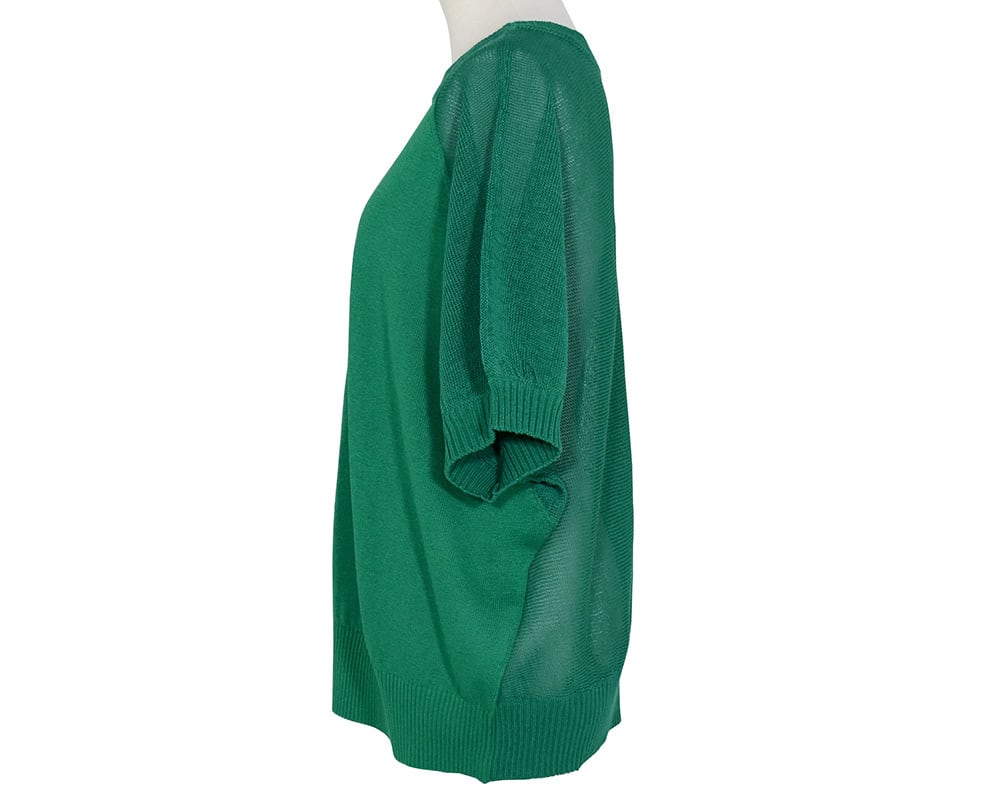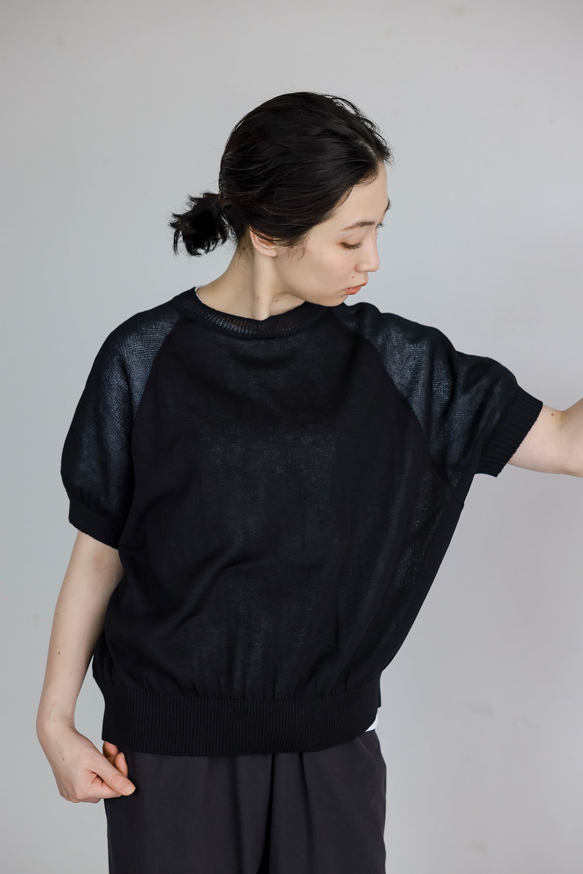 前後で異なる透け感と軽やかさが特徴のニットプルオーバーです。