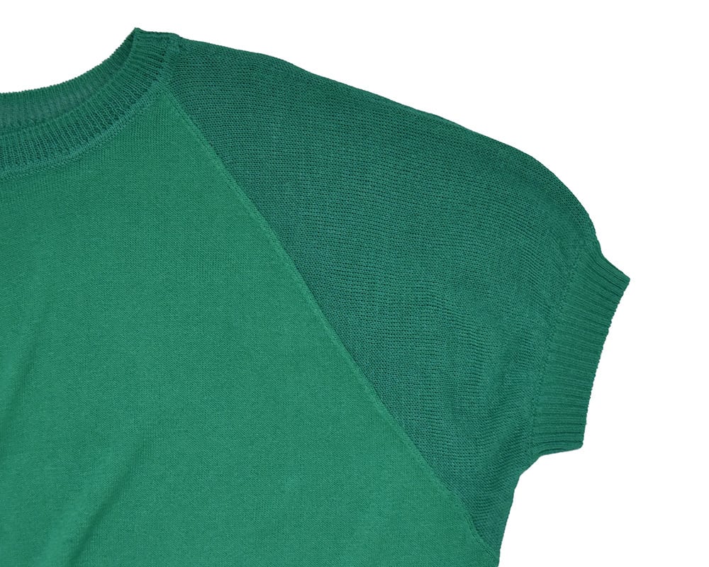 二の腕をさりげなくカバーする五分袖で、安心感のあるデザイン